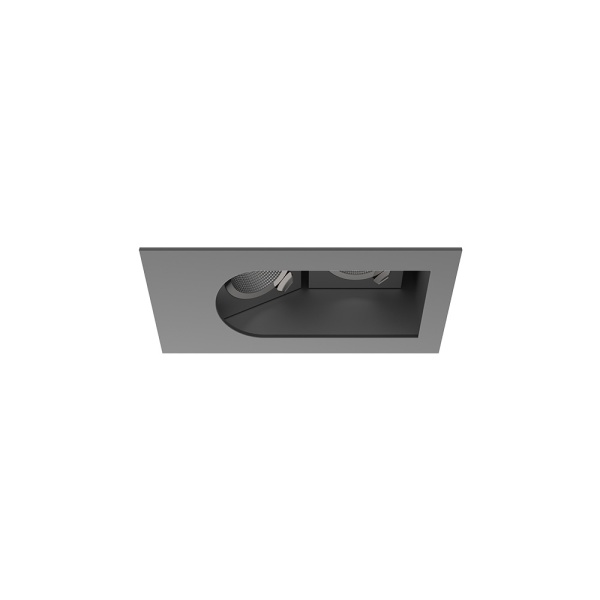 Recessed trim luminaire for indoor application, with orientable light projection. Exterior rim in brushed or painted stainless steel. Painted galvanized steel plate body.