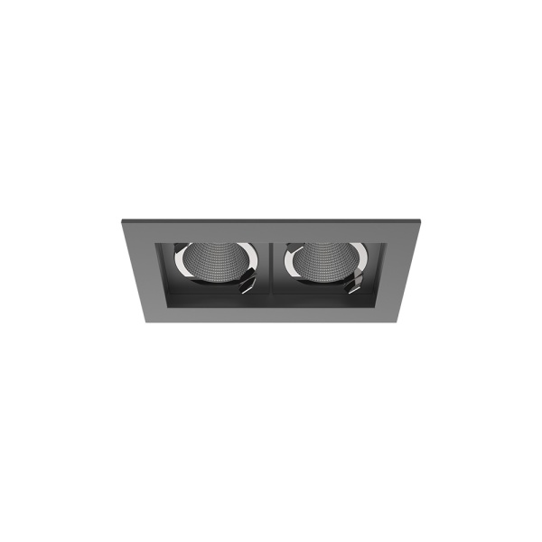Recessed trim luminaire for indoor application, with orientable light projection. Exterior rim in brushed or painted stainless steel. Painted galvanized steel plate body.