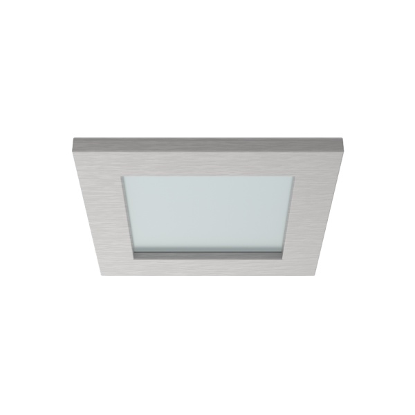 Recessed trim luminaire for indoor application, with downward light projection. Brushed stainless steel or painted aluminium rim.
