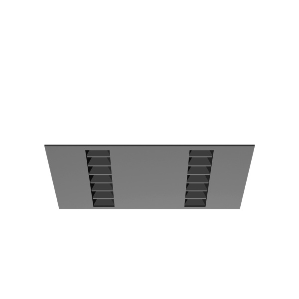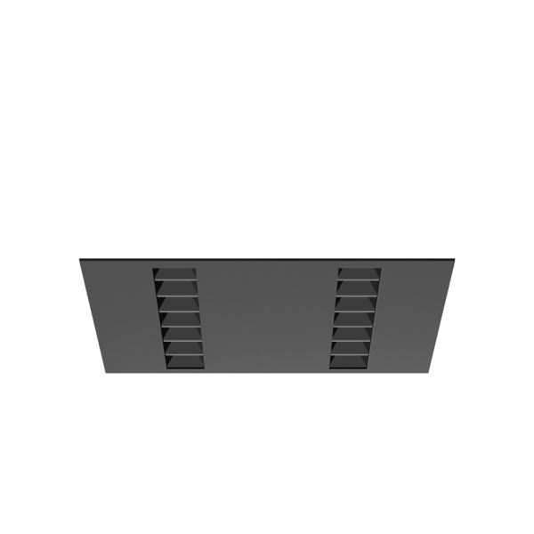 Luminaria empotrada con marco para aplicación interior, con proyección de luz descendente. Cuerpo de aluminio que puede pintarse en diferentes colores. Difusor de policarbonato opalino. Equipado con un sistema de lentes.