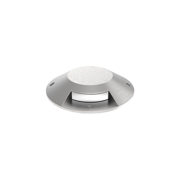Luminária de encastrar no solo com aba de remate para aplicação em espaços exteriores, com projeção de luz lateral. Aro em aço inox. Corpo em alumínio injetado. Vidro temperado. Caixa de encastrar incluída, em ABS. Esta instalação exige espaço de drenagem com gravilha no mínimo com 20cm.