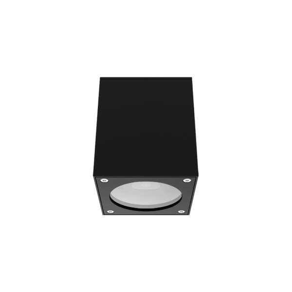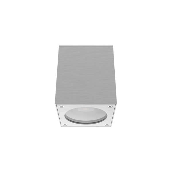 Luminária saliente de teto para aplicação em espaços exteriores, com projeção de luz descendente. Corpo em alumínio ou aço inox. Vidro de proteção incluído.