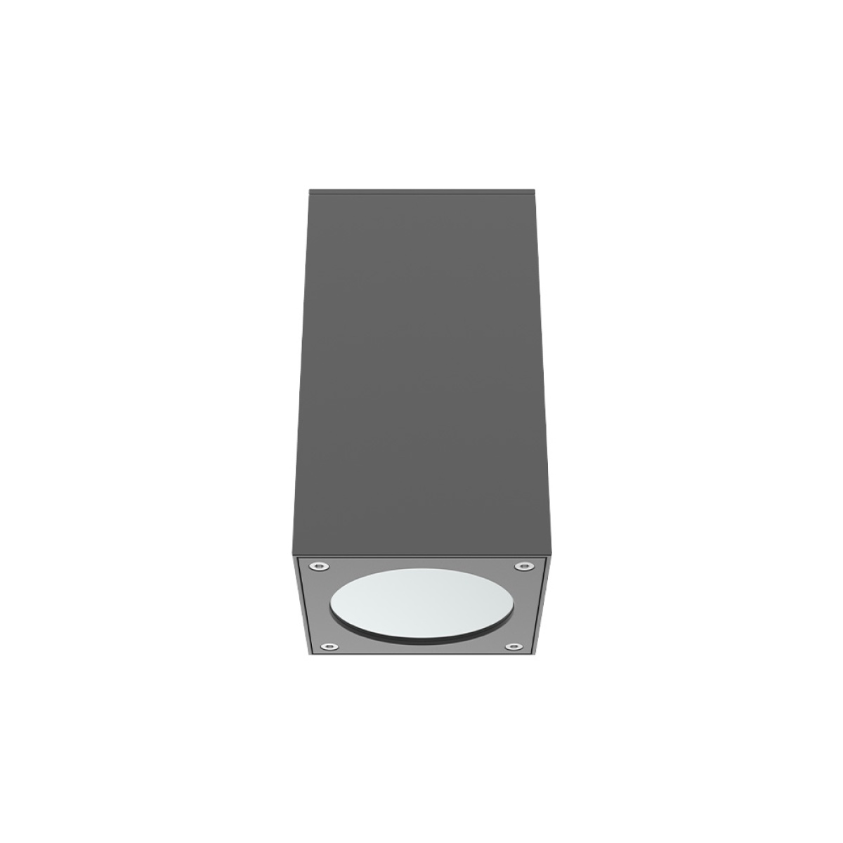 Luminária saliente de teto para aplicação em espaços exteriores, com projeção de luz descendente. Corpo em alumínio ou aço inox. Vidro de proteção incluído.