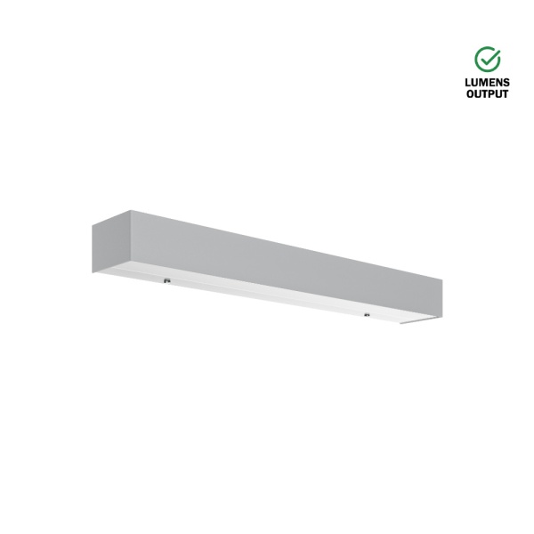Luminária saliente de parede para aplicação em espaços interiores, com projeção de luz descendente e ascendente. Corpo em aço inox escovado ou em alumínio pintado. Difusor em acrílico opalino. Driver incorporado.