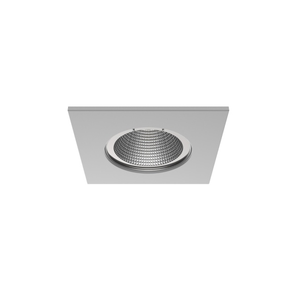 Luminária de encastrar com aba de remate para aplicação em espaços interiores, com projeção de luz descendente. Aro em aço inox escovado ou pintado.