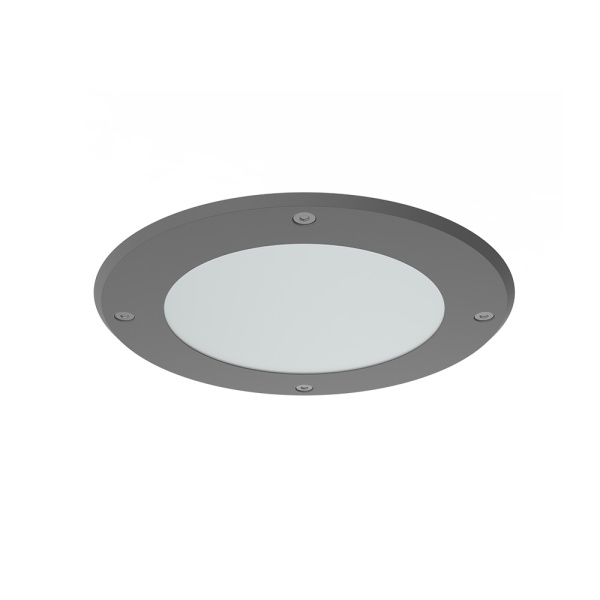 Luminária de encastrar no teto com aba de remate, para aplicação em espaços interiores e exteriores, com projeção de luz descendente. Aro em aço inox escovado ou pintado. Vidro temperado incluído. Corpo em alumínio injetado.