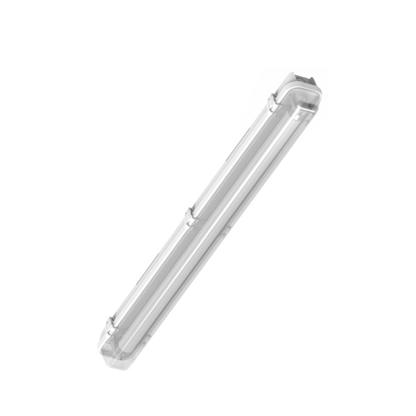 Luminária estanque saliente de teto para aplicação em espaços interiores e exteriores, com projeção de luz descendente. Corpo em policarbonato. Difusor em policarbonato prismático. Driver incorporado.
