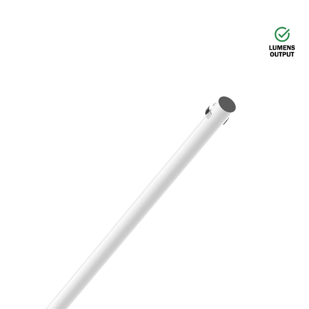 Luminária tubular saliente para aplicação no teto ou parede com projeção de luz descendente ou frontal 300º. Difusor em policarbonato e topos em alumínio pintado. Driver remoto.