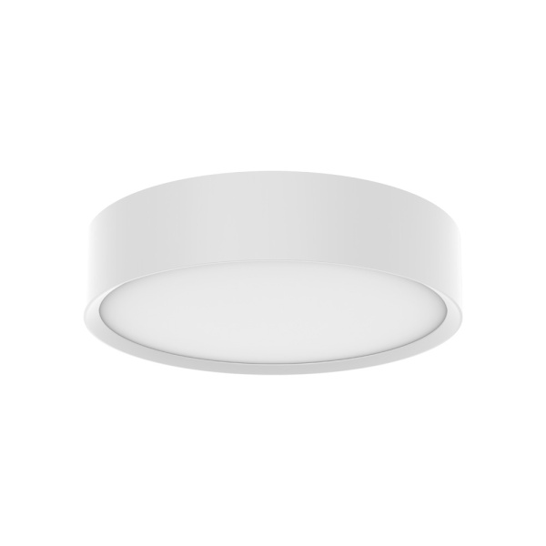Luminária saliente de teto para aplicação em espaços interiores e exteriores, com projeção de luz descendente. Corpo em alumínio escovado ou pintado. Difusor opalino.