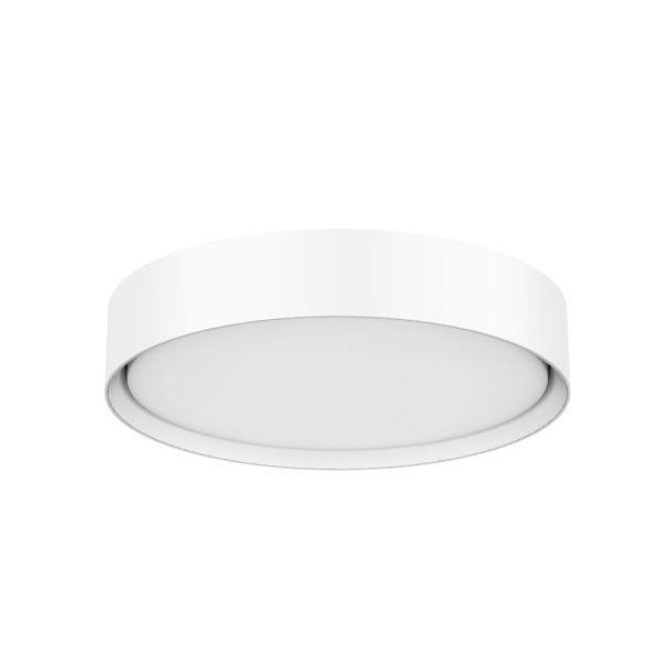 Luminária saliente de teto para aplicação em espaços interiores e exteriores, com projeção de luz descendente. Corpo em alumínio escovado ou pintado. Difusor opalino.
