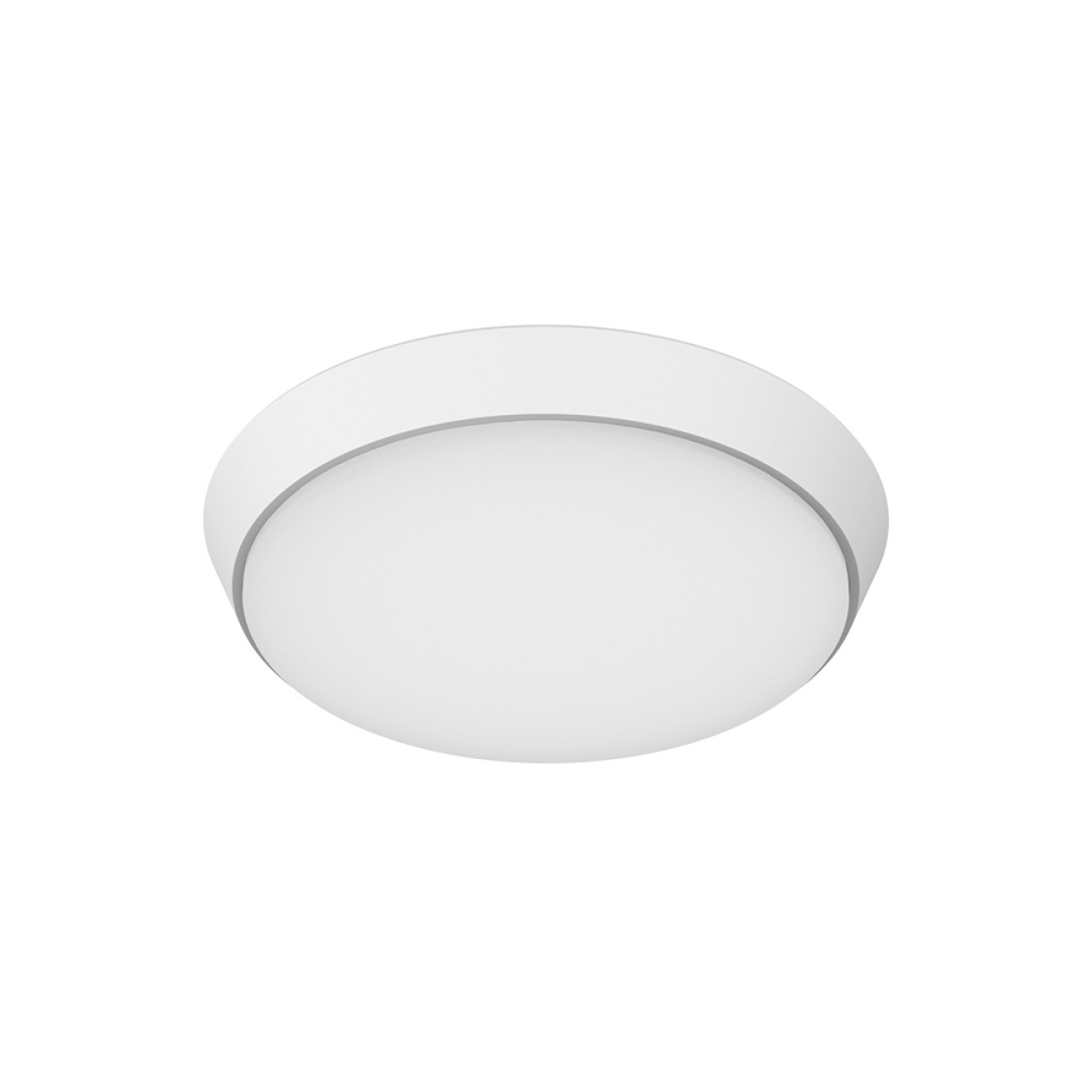 Luminária saliente de teto para aplicação em espaços interiores e exteriores, com projeção de luz descendente. Corpo em alumínio escovado ou pintado. Difusor opalino.