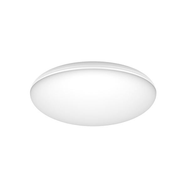 Luminária saliente de teto para aplicação em espaços interiores, com projeção de luz descendente. Difusor opalino. Driver incorporado.