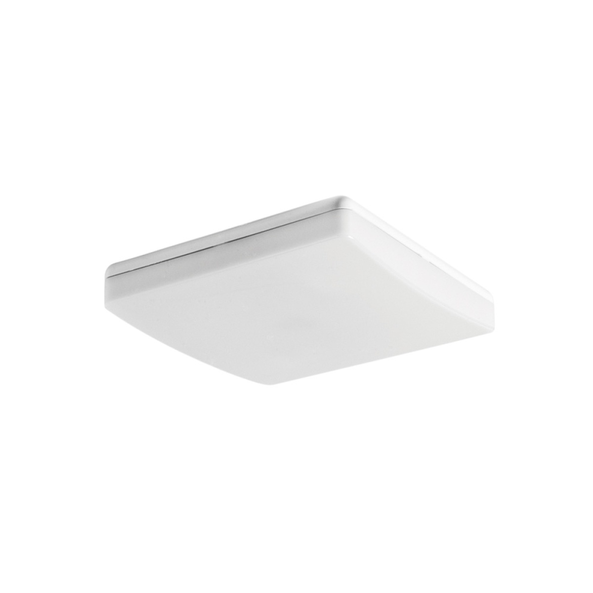Luminária saliente de teto para aplicação em espaços interiores, com projeção de luz descendente. Corpo em policarbonato.