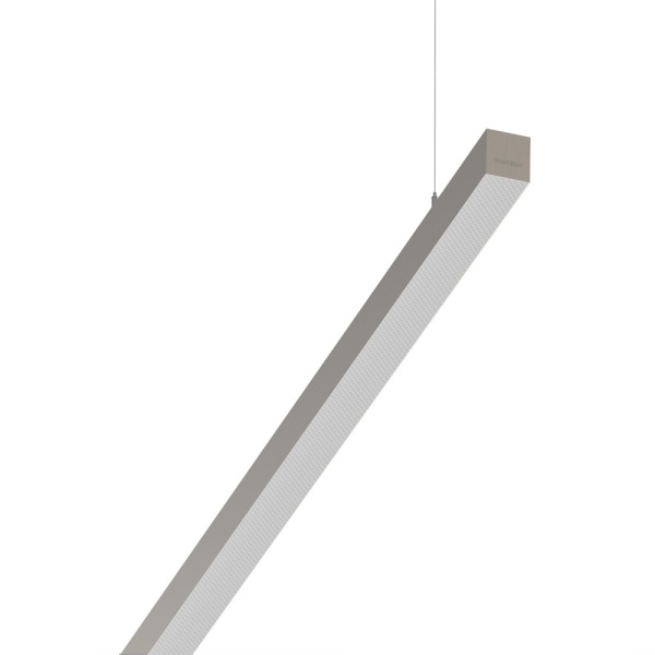 Luminária suspensa para aplicação em espaços interiores, com projeção de luz descendente. Corpo em alumínio extrudido com possibilidade de pintura em diversas cores. Difusor em policarbonato. Driver incorporado. Florão standard: saliente redondo. Possibilidade de se acrescentarem perfis curvos.