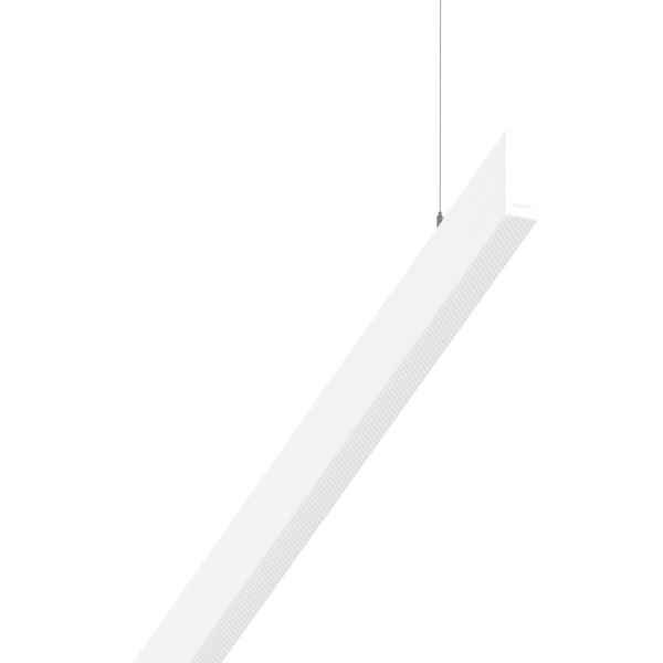 Luminária suspensa de perfil duplo para aplicação em espaços interiores, com projeçãode luz descendente e ascendente. Corpo em alumínio extrudido com possibilidade de pintura em diversas cores. Difusor em policarbonato opalino, prismático ou black. Driver incorporado. Florão standard: saliente redondo.