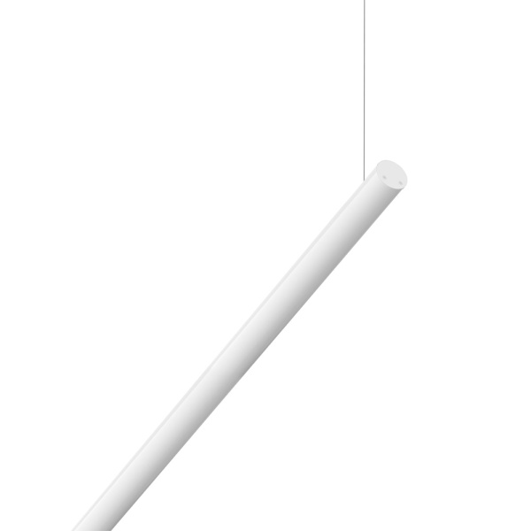 Luminária tubular suspensa horizontal em policarbonato. Projeção de luz descendente. Driver incorporado.