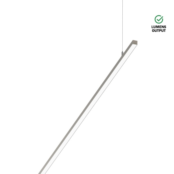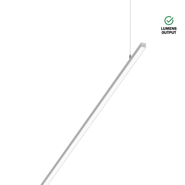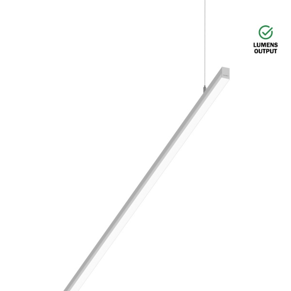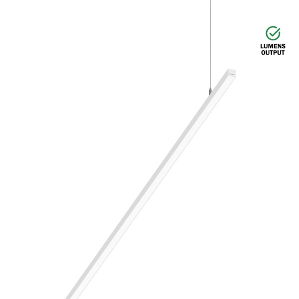 Luminária suspensa para aplicação em espaços interiores, com projeção de luz descendente. Corpo em alumínio extrudido com possibilidade de pintura em diversas cores. Difusor em policarbonato opalino ou black. Driver remoto. Florão standard: saliente redondo. Possibilidade de se acrescentarem diferentes acessórios modulares.
