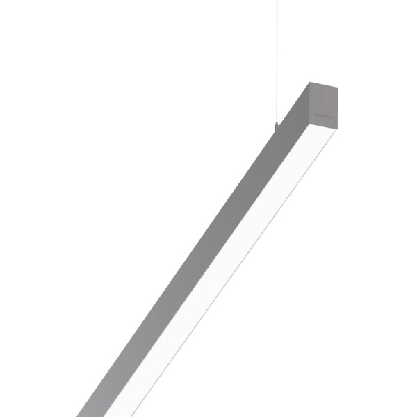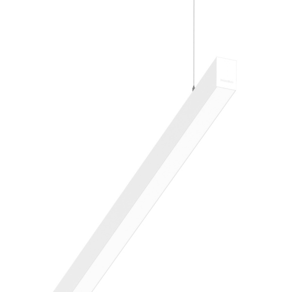 Luminária suspensa para aplicação em espaços interiores, com projeção de luz descendente e ascendente. Corpo em alumínio extrudido com possibilidade de pintura em diversas cores. Difusor em policarbonato opalino, prismático ou black. Driver incorporado. Florão standard: saliente redondo.