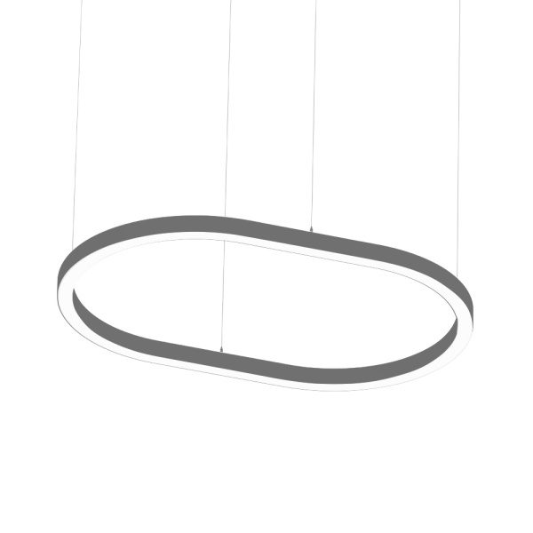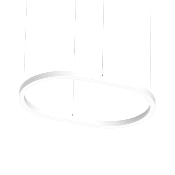 Luminária suspensa para aplicação em espaços interiores, com projeção de luz descendente. Corpo em alumínio extrudido com possibilidade de pintura em diversas cores. Difusor em policarbonato opalino, prismático e black. Driver incorporado. Florão standard: saliente redondo.
