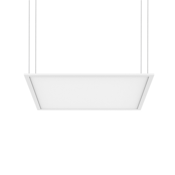 Luminária em painel para montagem direta em tetos suspendidos com medida reticular de 6000. Corpo em alumínio. Difusor standard PMMA prismático ou opalino. Driver remoto.