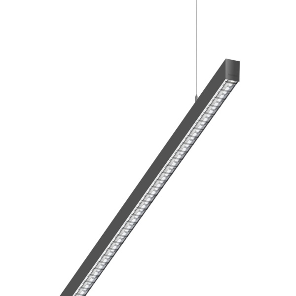 Suspended luminaire for indoor application, with downward light projection. Extruded aluminum body with the possibility of painting in different colors. Polycarbonate diffuser. Incorporated driver. Standard ceiling rose: round surface. Possibility of adding curved profiles, as well as different modular accessorie.