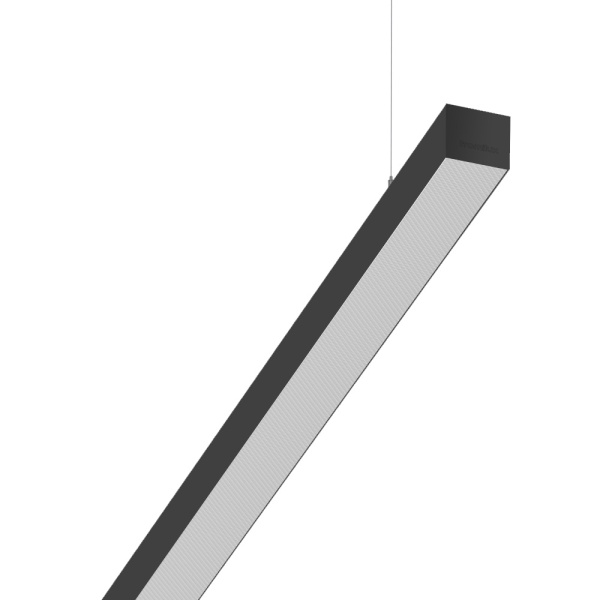 Suspended luminaire for indoor application, with downward light projection. Extruded aluminum body with the possibility of painting in different colors. Polycarbonate diffuser. Incorporated driver. Standard ceiling rose: round surface.