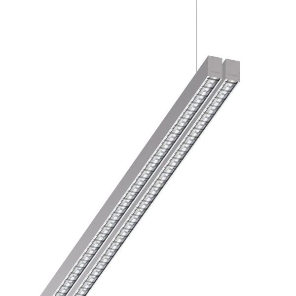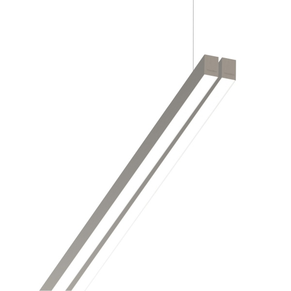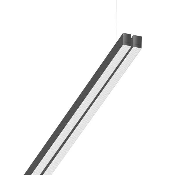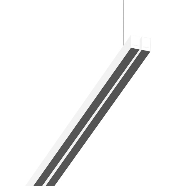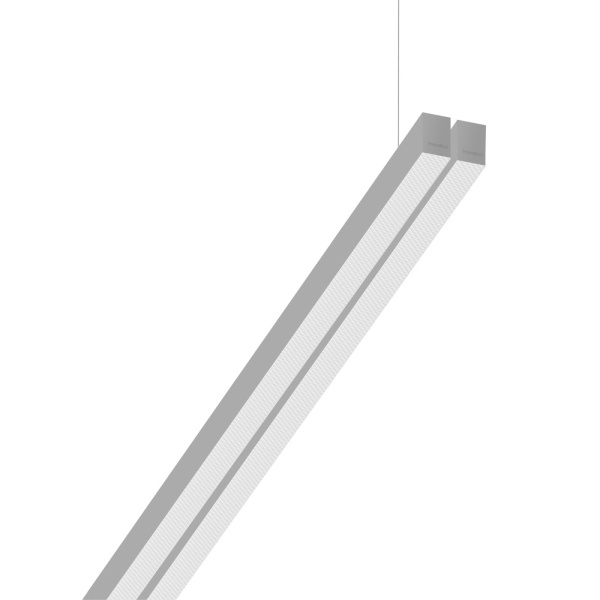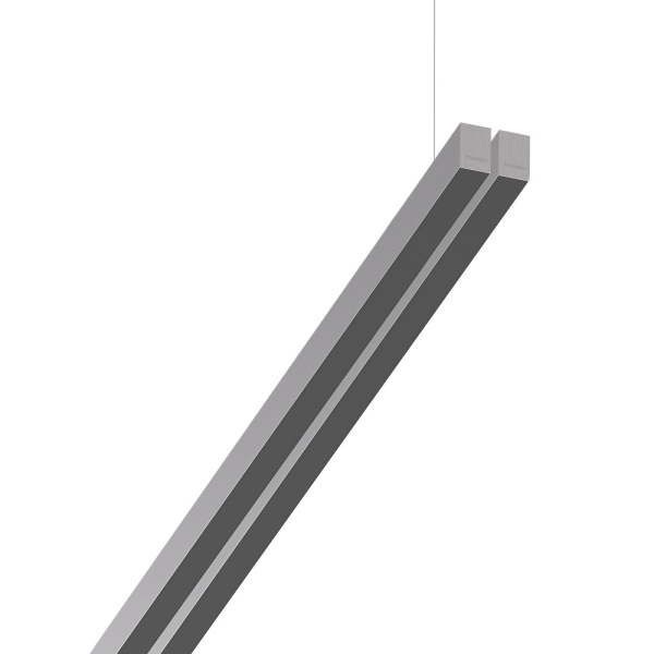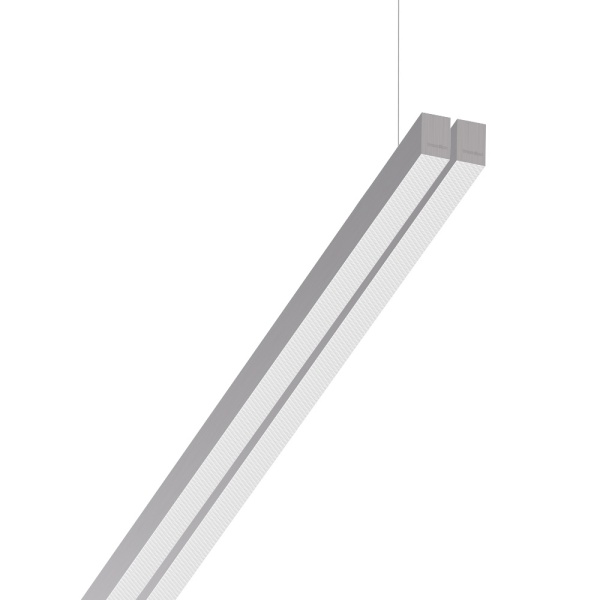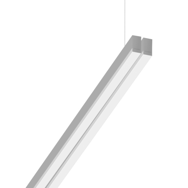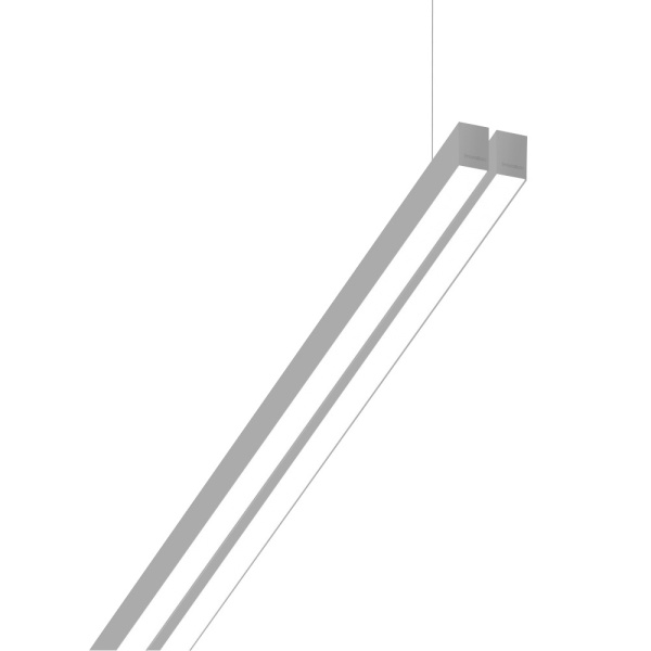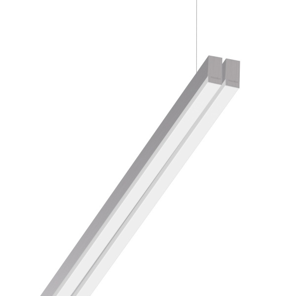 Suspended luminaire of double profile for indoor application, with downward light projection. Extruded aluminum body with the possibility of painting in different colors. Polycarbonate diffuser. Incorporated driver. Standard ceiling rose: round surface.