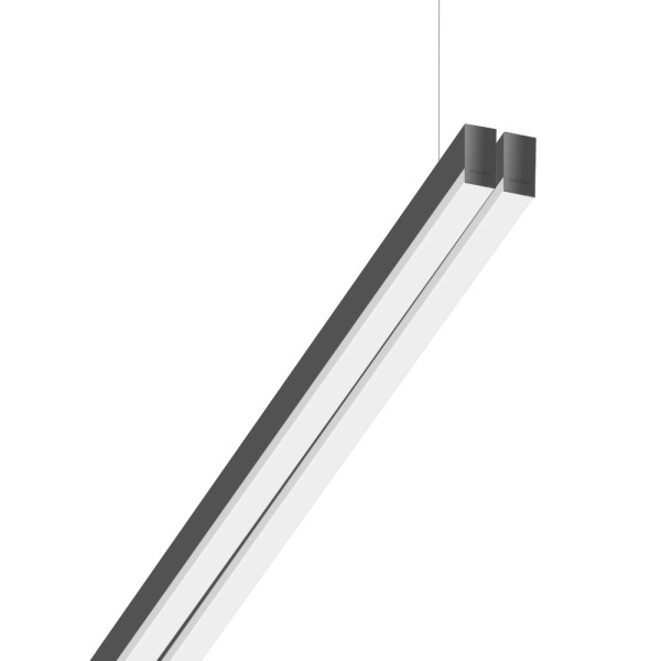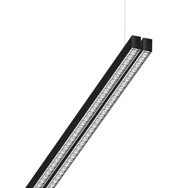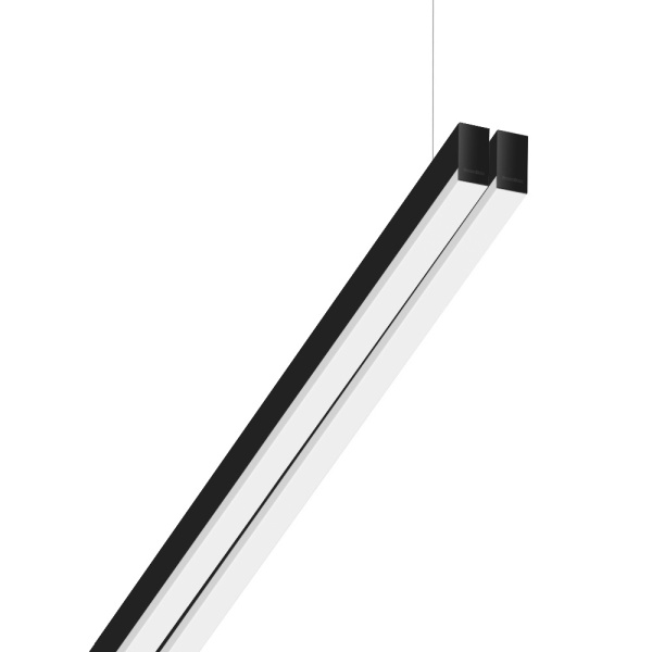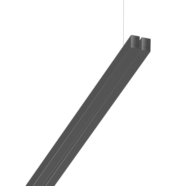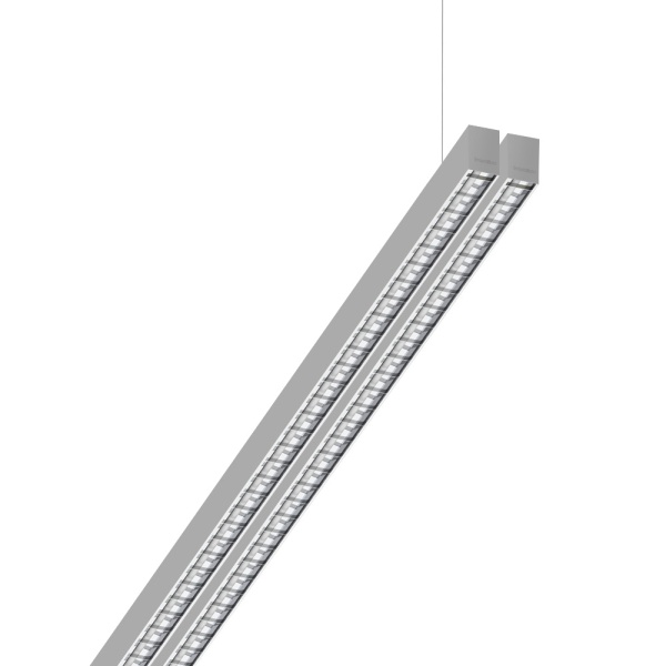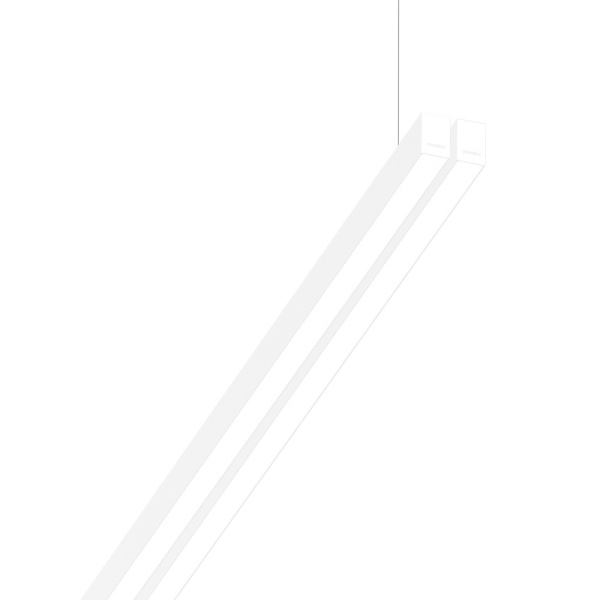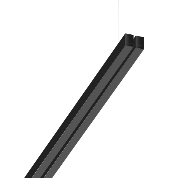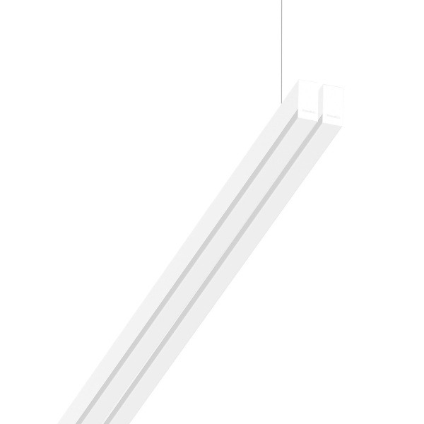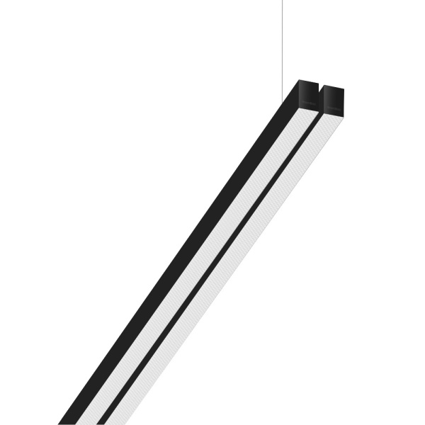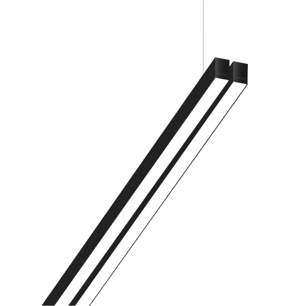 Suspended luminaire of double profile for indoor application, with downward light projection. Extruded aluminum body with the possibility of painting in different colors. Polycarbonate diffuser. Incorporated driver. Standard ceiling rose: round surface.