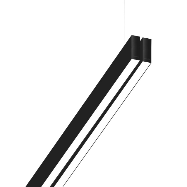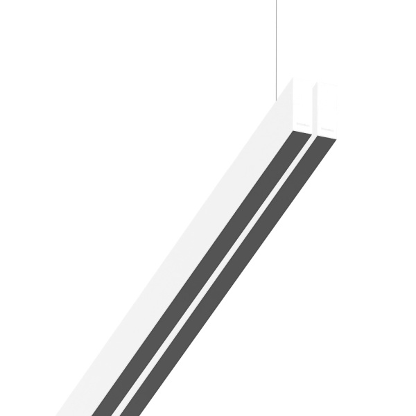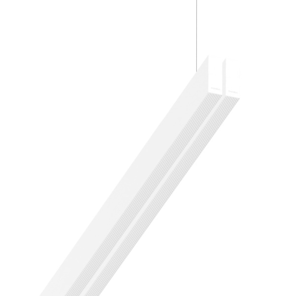 Suspended luminaire of parallel double profile for indoor application, with downward and upward light projection. Extruded aluminum body with the possibility of painting in different colors. Polycarbonate diffuser in opaline, prismatic or black version. Incorporated driver. Standard fleuron: round surface.