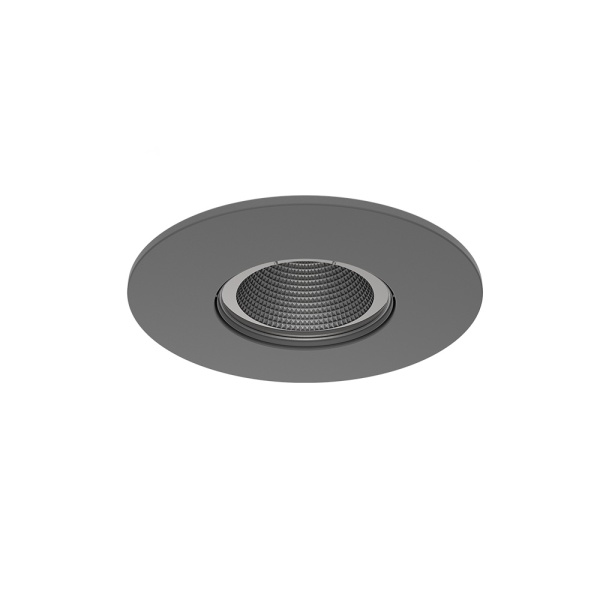 Recessed trim luminaire for indoor application, with orientable light projection. Exterior rim in brushed or painted stainless steel with the possibility of painting in different colors.