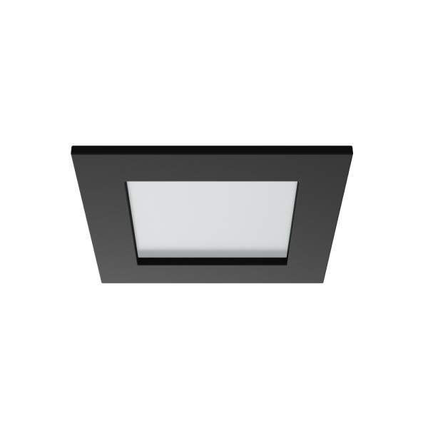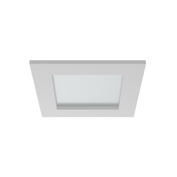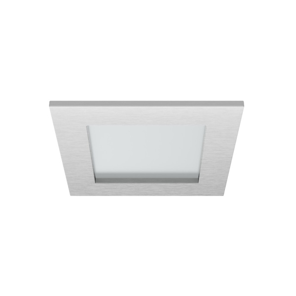 Recessed trim luminaire for indoor application, with downward light projection. Exterior rim in brushed or painted stainless steel. Galvanized steel plate body, painted.