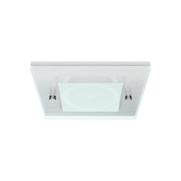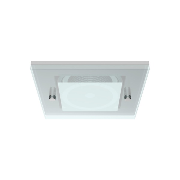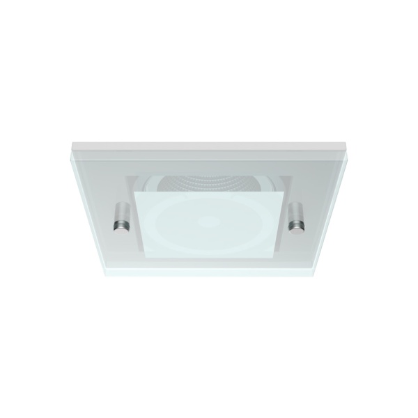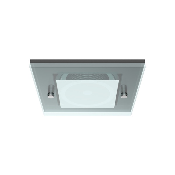 Recessed trim luminaire for indoor application, with downward light projection. Exterior rim in brushed or painted stainless steel. 4mm thickness tempered glass included. Galvanized steel plate body, painted.