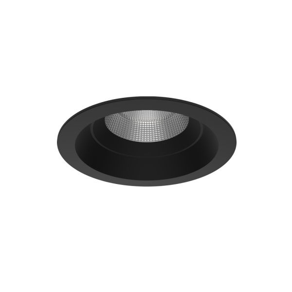 Recessed trim luminaire for indoor application, with downward light projection. Injected aluminium body. Transparent glass diffuser. Orientable. Remote driver.