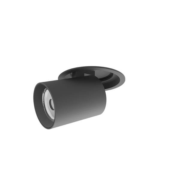 Recessed luminaire with finishing flange for indoor use, with directional light projection. Aluminium body. Remote driver included, not integrated in the luminaire.