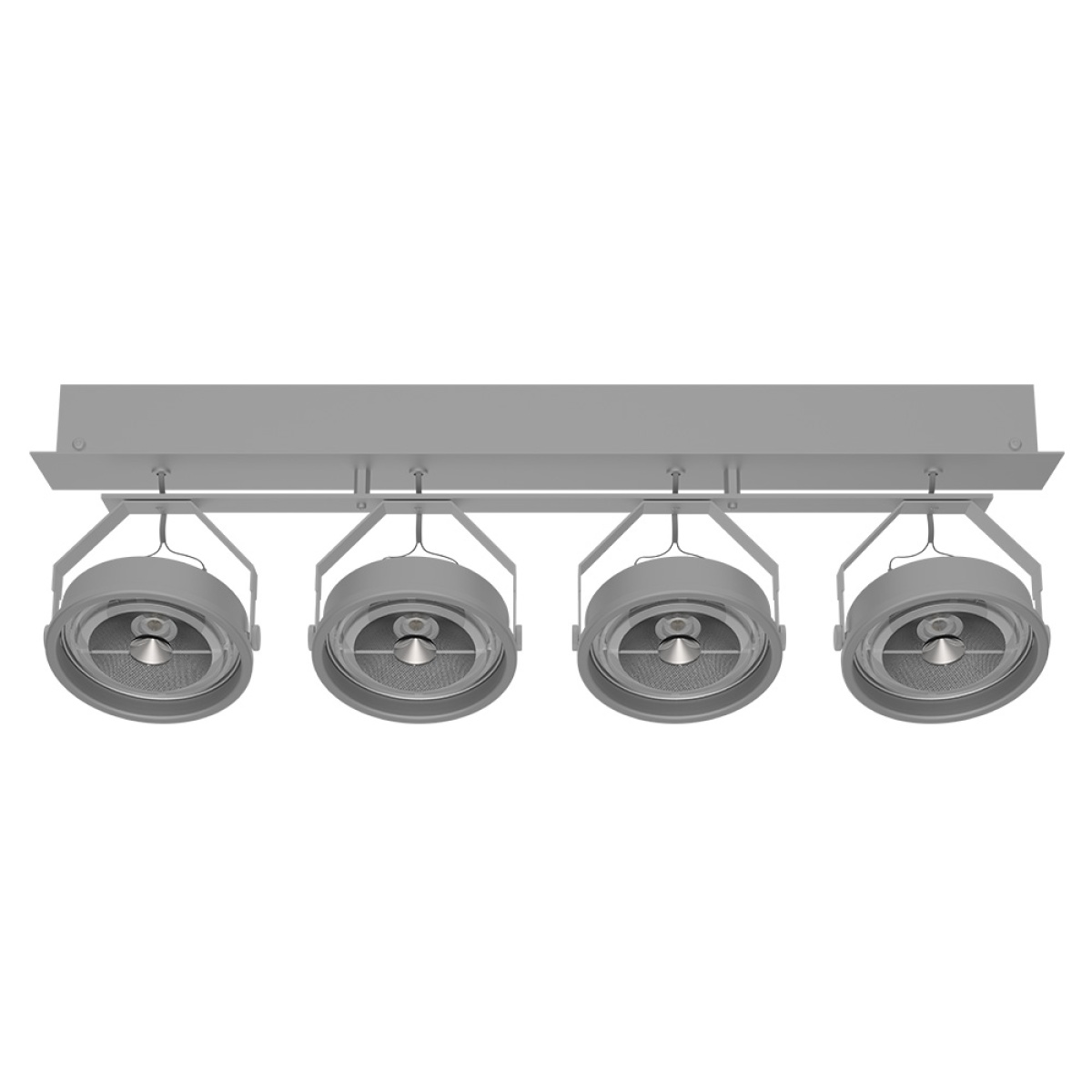 Surface ceiling luminaire for indoor application with orientable light projection. Galvanized steel plate body, painted. Incorporated driver.