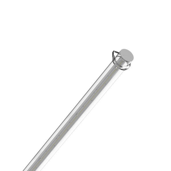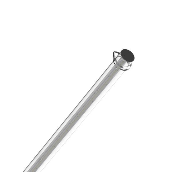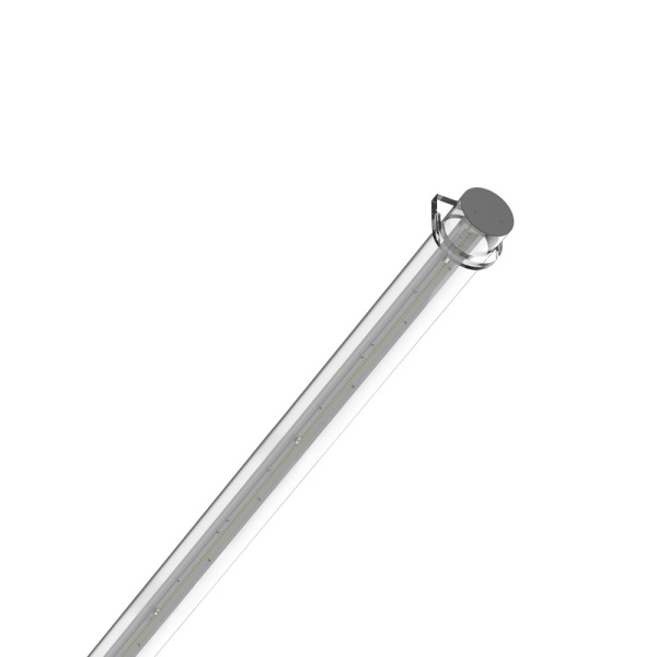 Surface tubular luminaire for ceiling or wall application. Downward light projection. Incorporated driver.