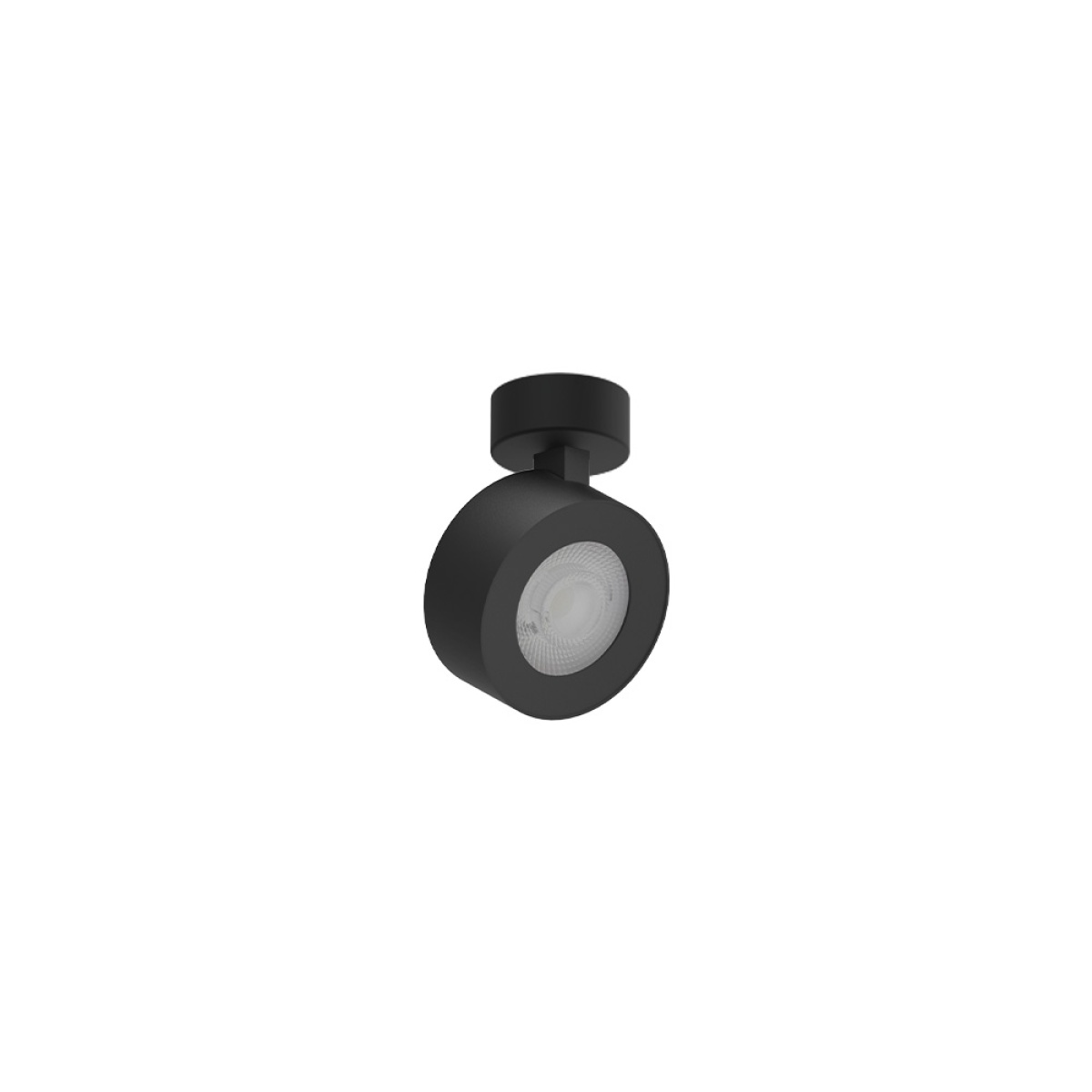 Surface projector for indoor application, with orientable light projection. Aluminium body. Transparent diffuser. Incorporated driver.