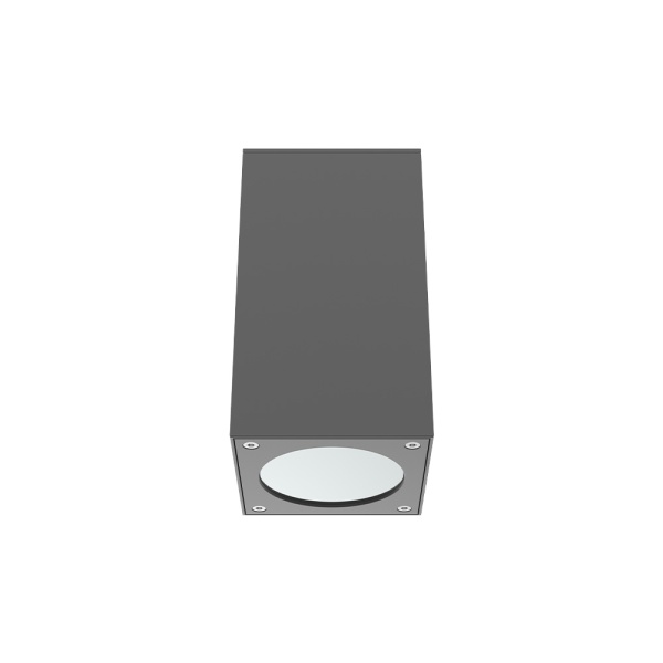 Surface ceiling luminaire for outdoor application, with downward light projection. Aluminium or stainless steel body. Protective glass included.
