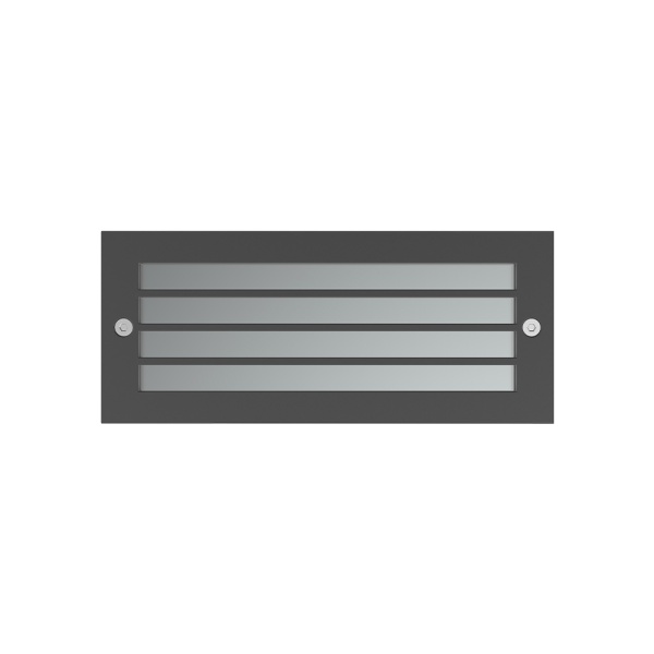 Recessed wall luminaire with trim for outdoor application, with front light projection. Injected aluminium outer rim and body. Recessed box not included.