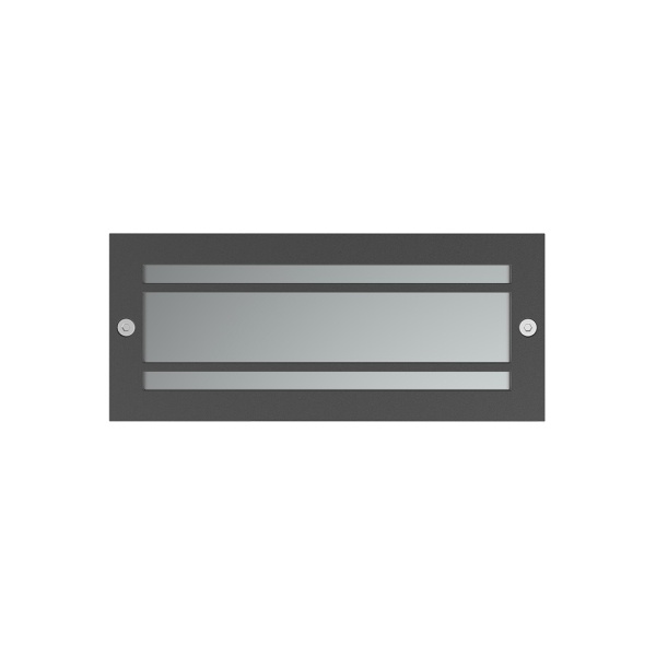 Recessed wall luminaire with trim for outdoor application, with front light projection. Injected aluminium outer rim and body. Recessed box not included.