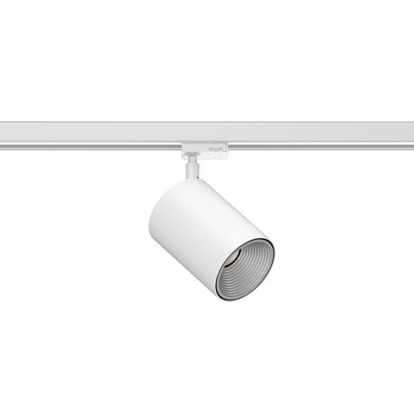 Proyector de carril trifásico de 230 V para uso en interiores, con proyección de luz ajustable. Cuerpo de aluminio con posibilidad de pintar en diferentes colores.