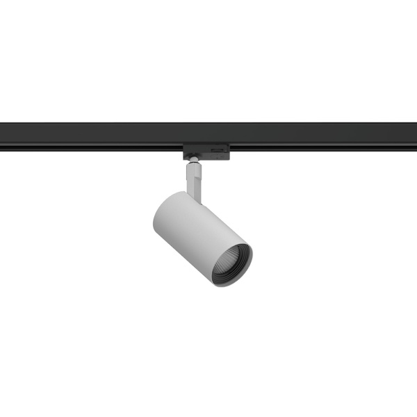 Proyector de carril trifásico de 230 V para uso en interiores, con proyección de luz ajustable. Cuerpo de aluminio con posibilidad de pintar en diferentes colores.