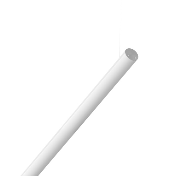Luminaria tubular suspendida horizontalmente en policarbonato. Proyección de luz descendente. Driver incorporado.