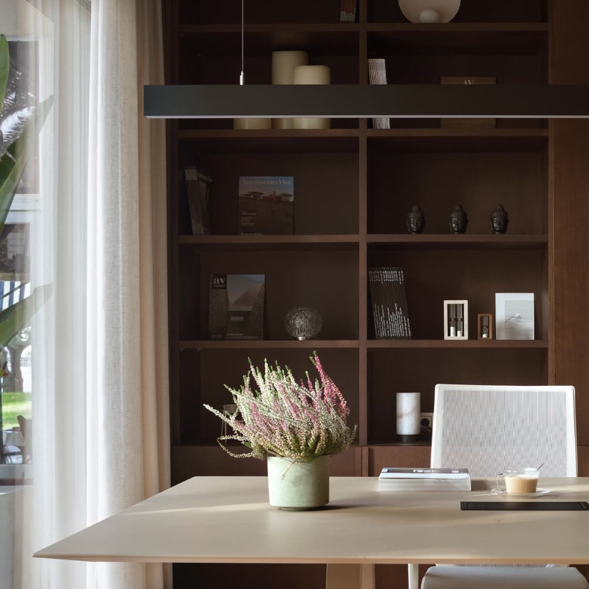 Luminaria suspendida para aplicación interior, con proyección de luz descendente y ascendente. Cuerpo de aluminio extruido con posibilidad de pintar en diferentes colores. Difusor en policarbonato opal, prismático o negro. Driver incorporado. Florón estándar: superficie redondo.