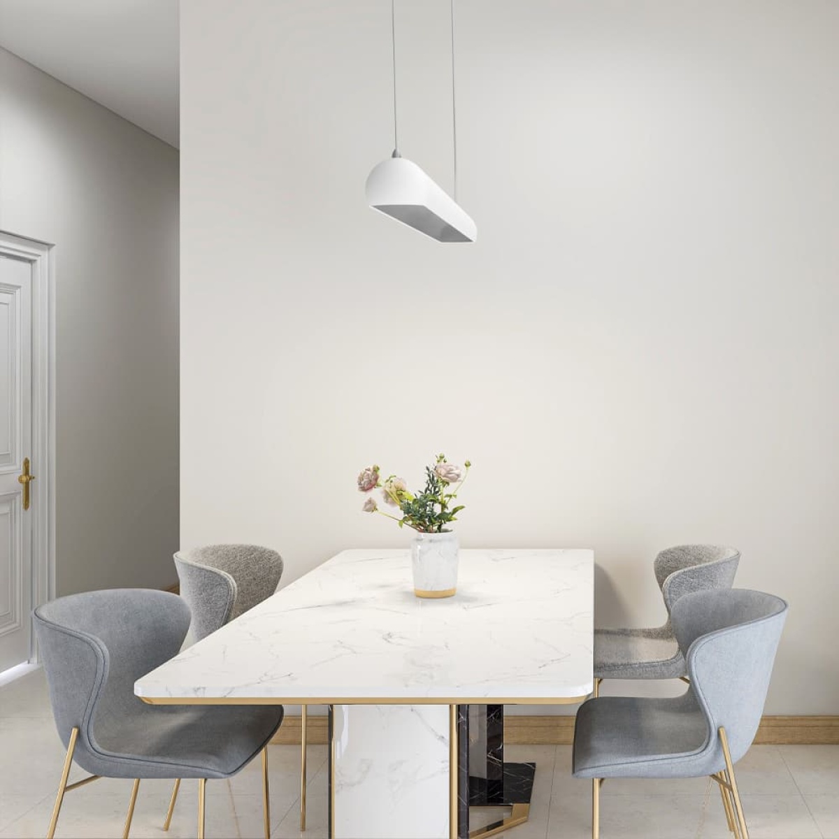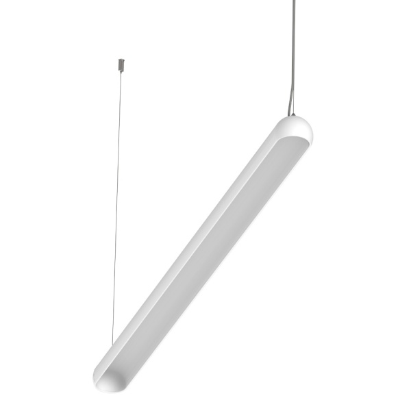 Luminaria suspendida para uso en interiores, con proyección de luz hacia abajo y hacia arriba. Cuerpo de aluminio extruido. Controlador incorporado.