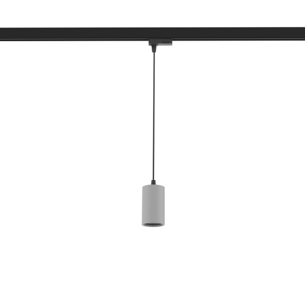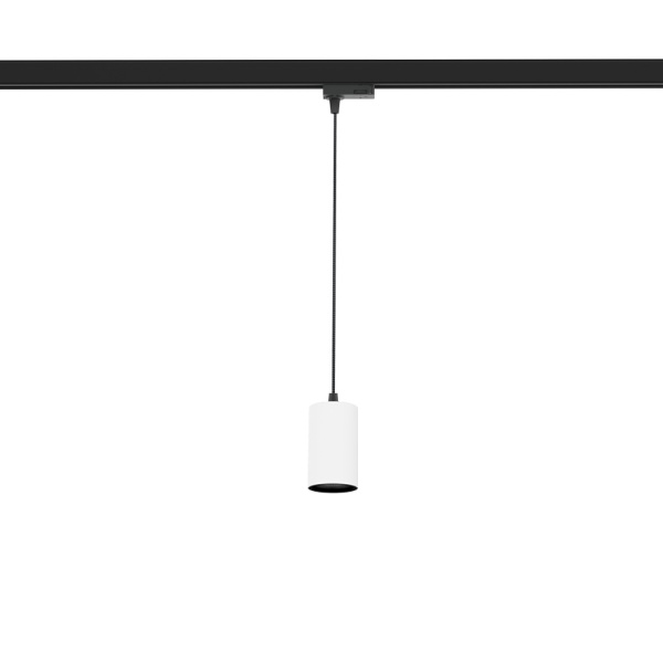 Luminaria de suspensión de carril trifásica de 230 V para uso en interiores, con proyección de luz hacia abajo. Cuerpo de aluminio. Puede pintarse en diferentes colores.