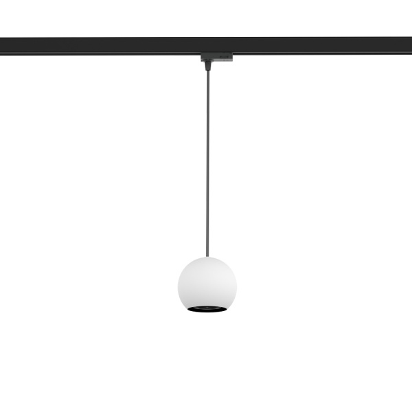 Luminaria de suspensión de carril trifásica de 230 V para uso en interiores, con proyección de luz hacia abajo. Cuerpo de aluminio. Puede pintarse en diferentes colores.