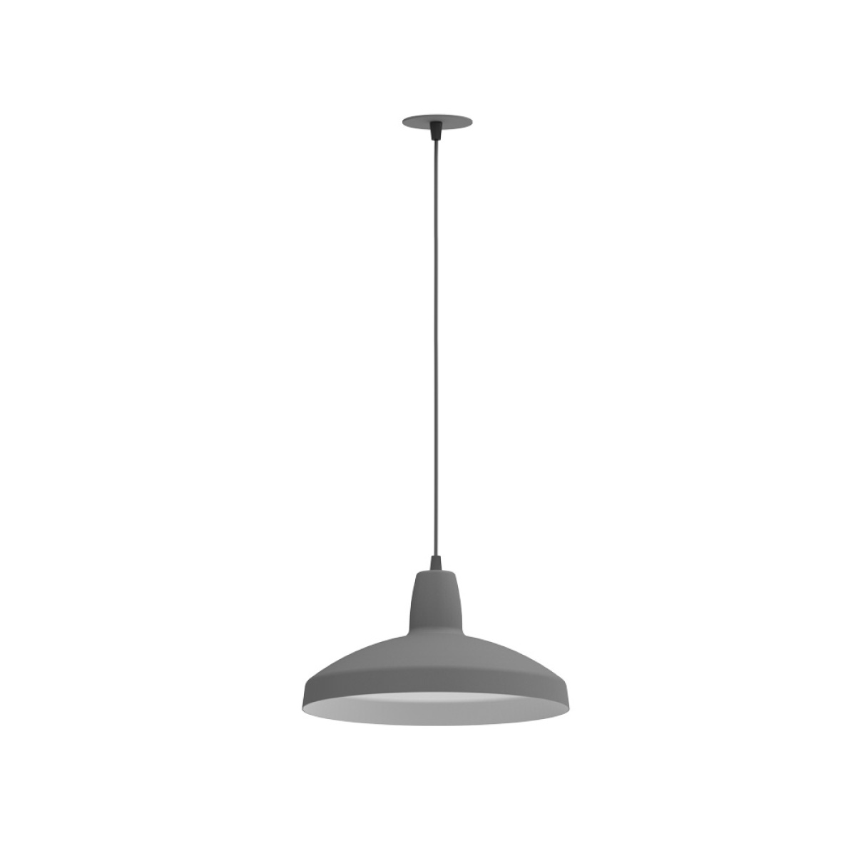 Luminaria suspendida para aplicación interior, con proyección de luz descendente. Cuerpo de aluminio con posibilidad de pintar en diferentes colores. Florón empotrado redondo.