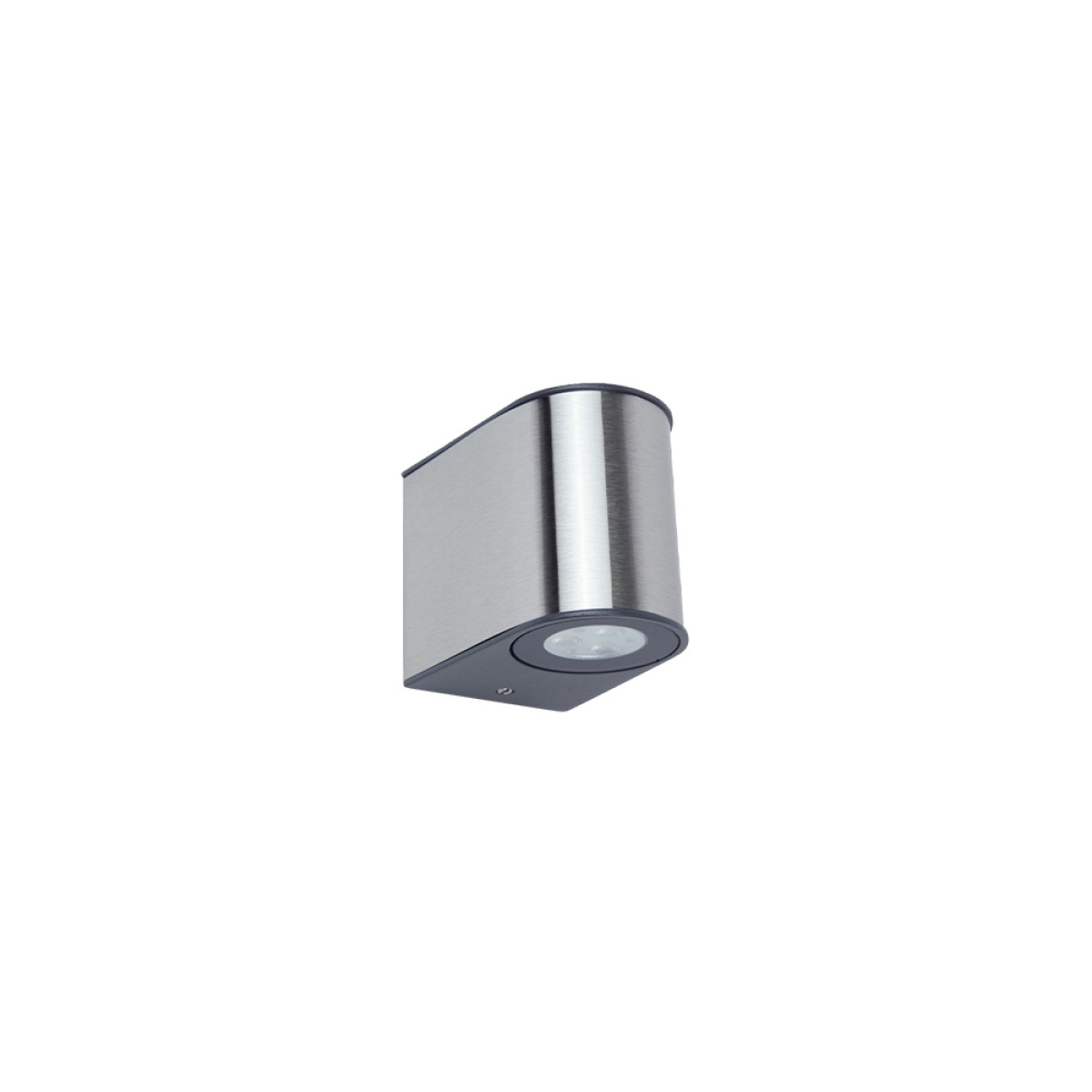 Luminaire surface du mur pour application extérieur, avec projection de lumière descendant et ascendant. Collorette frontal en acier inoxidable. Diffuseur en verre trempé. Driver intégré.