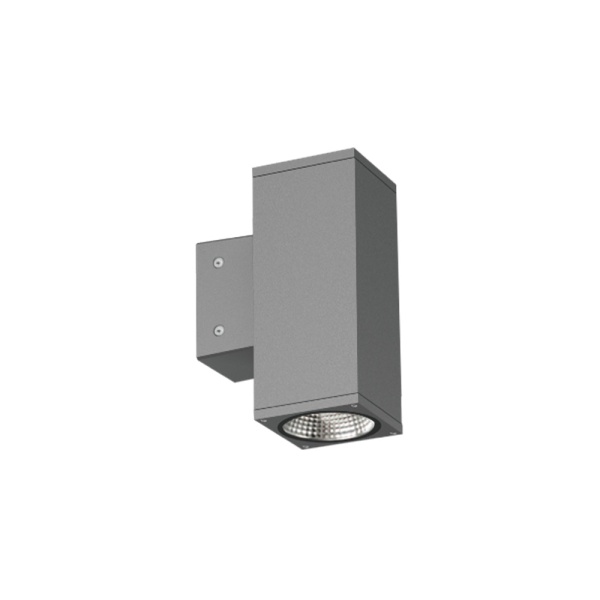 Luminaire surface du mur pour application extérieur, avec projection de lumière descendant et ascendant. Corps en aluminium. Diffuseur prismatique. Driver intégré.